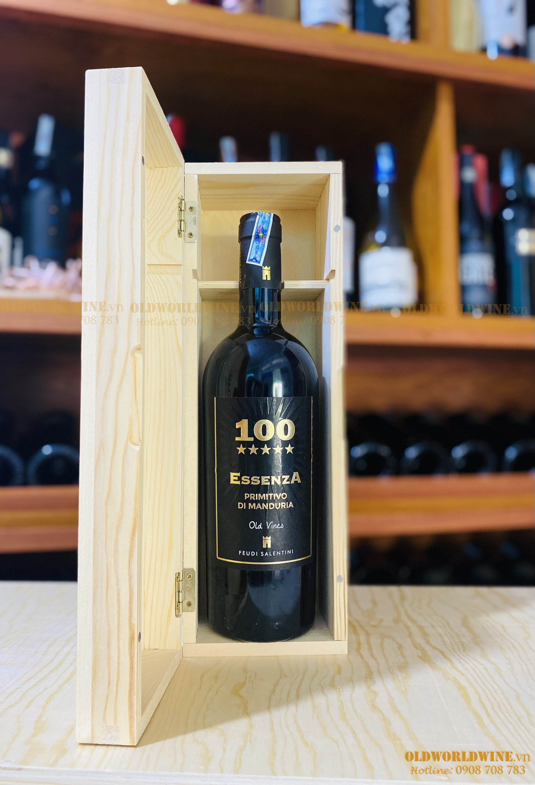 Vang 100 Essenza Primitivo di Manduria là chai rượu đẳng cấp của nhà sản xuất Feudi Salentini, được thành lập từ năm1929. Vườn nho thuộc sở hữu của họ có diện tích lên đến 400 hecta. Họ bắt đầu tự đóng chai từ năm 1957.