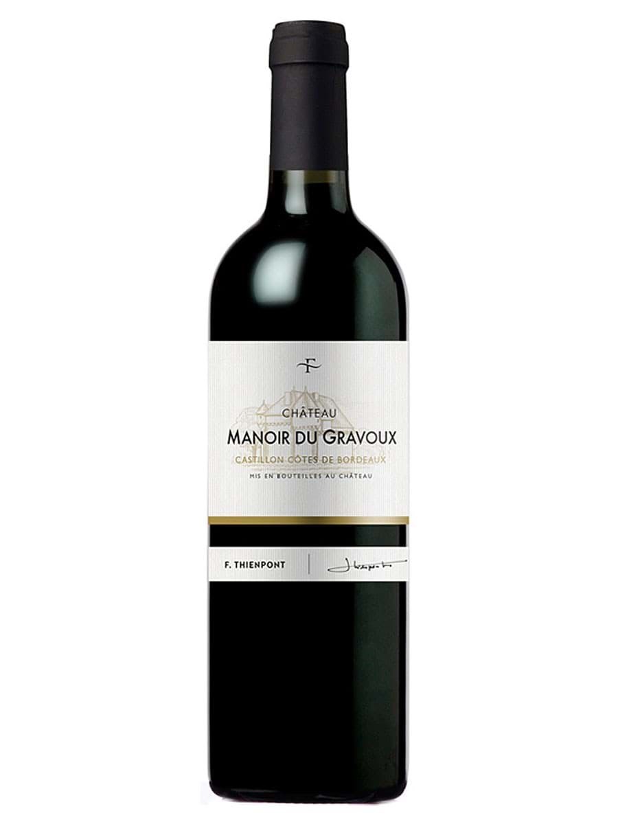 Rượu vang đỏ F. Thienpont Chateau Manoir du Gravoux, được phối trộn từ hai giống nho Merlot và Cabernet Franc, vùng Bordeaux, Pháp.