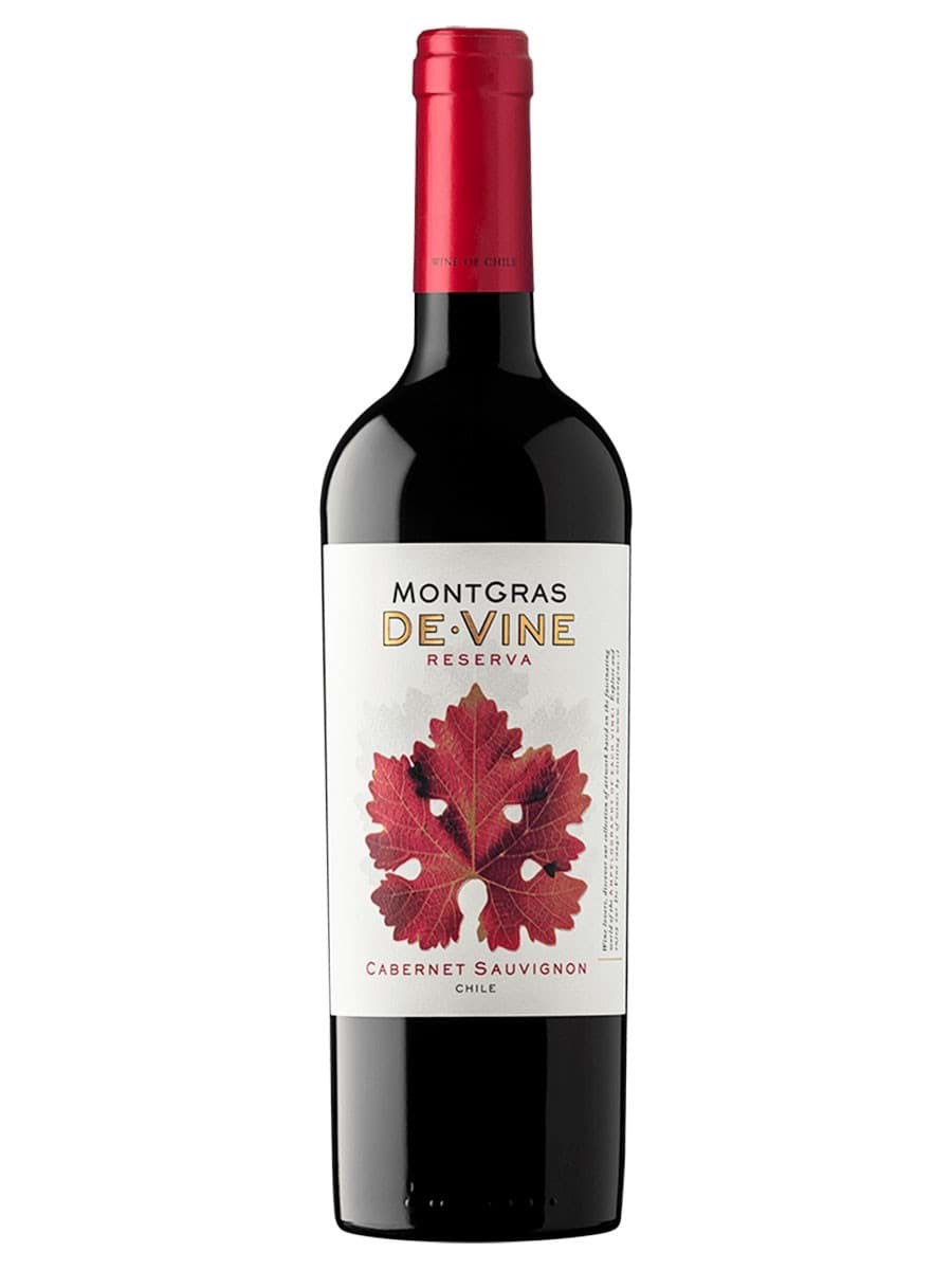 Rượu vang đỏ Montgras de Vine Reserva Cabernet sauvignon, vùng Central Valley, Chile. Nho Cabernet Sauvignon được thu hoạch thủ công cho sản xuất, sau khi lên men, 65% rượu được 6 tháng trong thùng gỗ sồi.