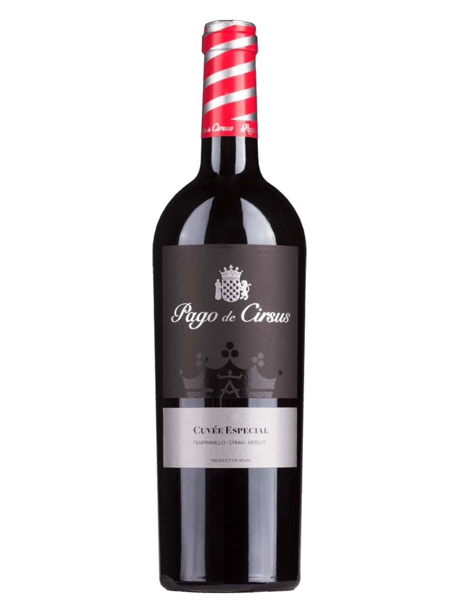 Rượu vang đỏ Pago de Cirsus Cuvee Especial, được phối trộn từ ba giống nho đỏ Merlot, Tempranillo và Syrah, Tây Ban Nha. Nho được thu hoạch thủ công cho sản xuất, sau khi lên men, rượu được ủ 14 tháng trong thùng gỗ sồi Pháp mới trước khi đóng chai.