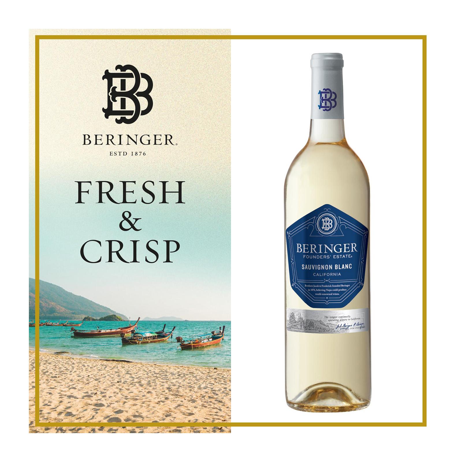 The Beringer Founders' Estate Sauvignon Blanc has a wonderfully retreshing grapefruit Aavour that is enhanced with intense citrus, ripe stone fruit and white fìg. The wine tìnishes with a clean grassy note and crisp acidity making it a períect match with grilled fìsh.
