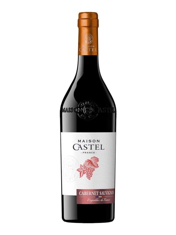 Rượu vang đỏ Pháp Maison Castel Cabernet Sauvignon, IGP d'Oc. Rượu có vẻ ngoài tươi sáng bởi màu đỏ thẫm của quả đen. Hương thơm của quả mọng đen mâm xôi và hương vani. Vị rượu có kết thúc mượt mà.